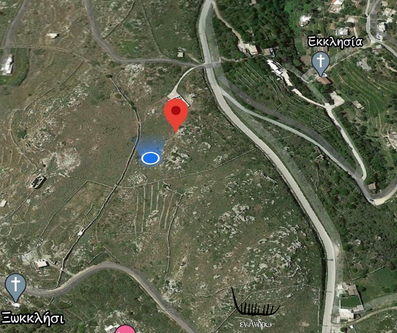 Το σημάδι δείχνει την περιοχή της φωτιάς. Διακρίνονται το χωριό, το νεκροταφείο κλπ Μετά από επισταμένη ανακριτική έρευνα του πυροσβεστικού κλιμακίου Άνδρου και της ΔΑΕΕ (Διεύθυνση Αντιμετώπισης Εγκλημάτων Εμπρησμού), που ήρθε από την Αθήνα με εντολή του υφυπουργού Πολιτικής Προστασίας Ν. Χαρδαλιά, συνελήφθη εμπρηστής, ο οποίος που έβαλε φωτιά στην περιοχή Ζαγανιάρη της Άνδρου.