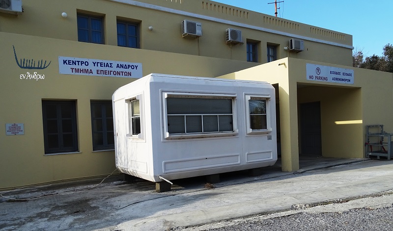 Το κοντέινερ/δωμάτιο μπροστά στο Κέντρο Υγείας. Βρέθηκε από τον αντιδήμαρχο Χώρας στις Στενιές. Μεταφέρθηκε μετά από συνεννόηση του Δήμου με τον ιδιοκτήτη και εταιρεία του νησιού. (Ο πρόεδρος της Επιτροπής Διαχείρισης Κρίσης στο σημερινό δελτίο τύπου 24/3 επισημαίνει πως δεν υπάρχει πιστοποιημένο κρούσμα στο νησί μας, όμως υπάρχει πιστοποιημένο στις Κυκλάδες (Σύρο). Αναφέρει την εγκατάσταση… Continue reading Χωρίς κρούσμα η Άνδρος. Στη Σύρο το πρώτο στις Κυκλάδες. Διαμορφώθηκε χώρος υποδοχής στο Κέντρο Υγείας.