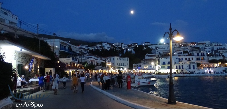Γιορτή λεμονιού στο Μπατσί. Με τον κόσμο να ξεχύνεται στον παραλιακό δρόμο. Επισκέπτες που έφτασαν μέχρι εδώ για ένα διαφορετικό τριήμερο. Και το Μπατσί Σαββάτο βράδυ τους προσφέρει την γιορτή αυτή της Άνδρου. Πάνω από την μικρή γραφική πόλη ένα υπέροχο φεγγάρι να κοιτά ράθυμα όλα όσα συμβαίνουν εδώ…