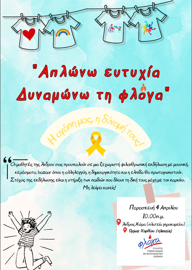Η Φλόγα κινητοποίησε και φλόγισε τις καρδιές των νέων της Άνδρου. Η οργάνωση για την βοήθεια των παιδιών με καρκίνο ήρθε σήμερα Παρασκευή στην Άνδρο και όλα τα σχολεία της Χώρας (νηπιαγωγεία, δημοτικά (Μεσαριας και Άνδρου), γυμνάσιο, λύκειο ( ΕΠΑΛ Άνδρου, ΓΕΛ Άνδρου) καθώς και το παράρτημα του ΕΠΑΝ Άνδρου (Μουστάκειο) ήταν εκεί μαζί και… Continue reading Ολόθερμη συμπαράσταση της Άνδρου στα παιδιά της Φλόγας…
