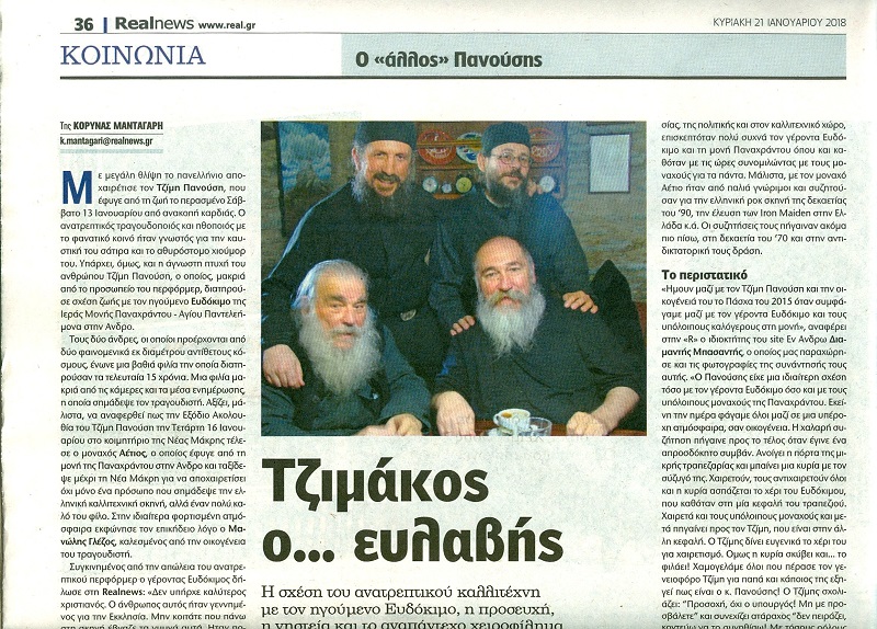 Ο Τζίμης με τον π. Αέτιο σε μια συζήτηση για το ελληνικό ροκ της δεκαετίας του 1990… (φωτ. Εν Άνδρω). (Πολλές φορές μέχρι σήμερα το Εν Άνδρω “ταξίδεψε” την Άνδρο πολύ πέρα από τα όρια της. Πολλές φορές το Εν Άνδρω – ένα τοπικό μέσο του Αιγαίου – “ταξίδεψε” το νησί μας σε… Continue reading Ο Τζιμάκος, η Πανάχραντός και το “Εν Άνδρω” θέμα… στο “Πρώτο Θέμα”, στην Huffington Post και στην Orthodoxia.online!!!