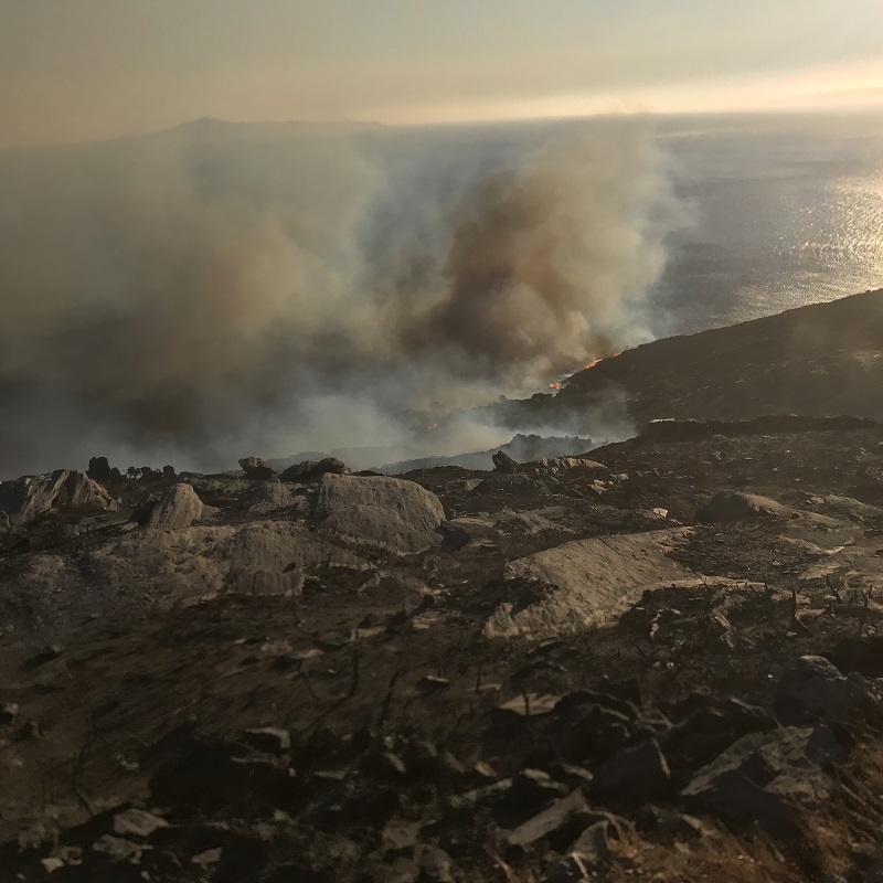 ΤΕΤΑΡΤΗ – 18/10/2017 – ΩΡΑ 8:00 Πρωινή φωτογραφία από αναγνώστη μας για το Εν Άνδρω. Διακρίνεται στο βάθος το καμένο τοπίο. Κάηκαν συνολικά, σύμφωνα με την πυροσβεστική 500-600 στρέμματα βλάστησης υψηλών θάμνων. Κάτι που βοήθησε την φωτιά να εξαπλωθεί και εμπόδισε τους πυροσβέστες να πλησιάσουν πολλά σημεία. Το ευτύχημα ήταν πως πρόλαβαν οι επίγειες δυνάμεις… Continue reading Η φωτιά έσβησε στον Χαλκολιμιώνα. Φωτογραφικό ρεπορτάζ και τελευταίες πληροφορίες