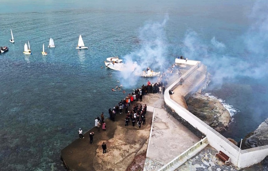 ΑΓΙΑ ΘΑΛΑΣΣΙΝΗ Παρουσία λίγου κόσμου σε μια άδεια ακόμα Άνδρο ετελέστηκε ο αγιασμός των υδάτων στην ακτή της Αγίας Θαλασσινής στην Χώρα της Άνδρου. Και οι τρεις ενορίες της Χώρας κατέβηκαν υπό τους ήχους της φιλαρμονικής του Μουσικού Συλλόγου στην ακτή και έριψαν τον σταυρό τιμώντας τα Θεοφάνεια και αγιάζοντας την θάλασσα, από την οποία… Continue reading ΑΝΔΡΟΣ: Αγιασμός υδάτων στην Αγία Θαλασσινή και στον ποταμό των Λαμύρων