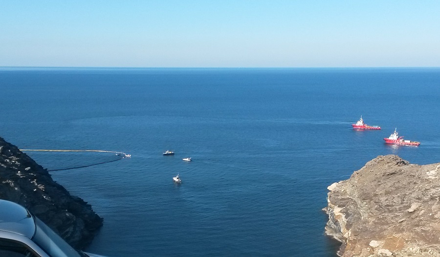 Του Δημήτρη Σταυρόπουλου Στο σημείο που είναι το βυθισμένο πλοίο, όπως βλέπουμε, έχει τοποθετηθεί φράγμα πετρελαίου από την εταιρεία απορρύπανσης. Υπάρχουν επίση δύο ρυμουλκά, δύτες και σκάφη του Λιμενικού (φωτ. Εν Άνδρω). Στην άγρια ερημιά των ακτών του Καμπανού βρίσκεται σε εξέλιξη μια μεγάλη θαλάσσια επιχείρηση για την σωτηρία των ακτών της Άνδρου, αλλά… Continue reading “Επιχείρηση Καμπανός”: Το σχέδιο για την σωτηρία των ακτών και του πλοίου Cabrera