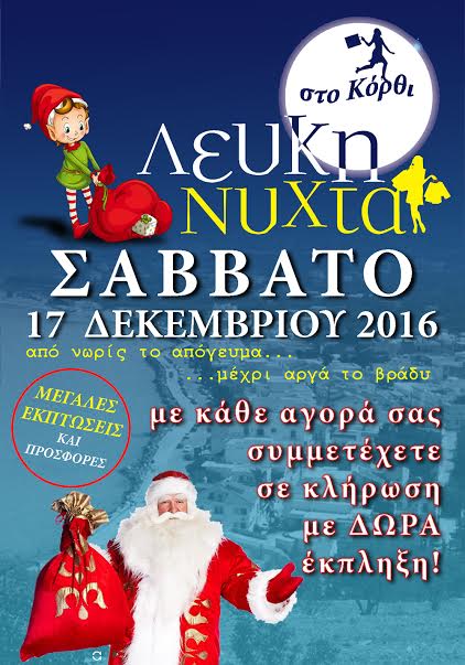 Του Δημήτρη Αντωνέλλου Οι επαγγελματίες, οι σύλλογοι και οι φορείς του Κορθίου αποφάσισαν να διοργανώσουν για 3η συνεχόμενη χρονιά τη ΛΕΥΚΗ ΝΥΧΤΑ. Τα καταστήματα της περιοχής έχουν ανακοινώσει ήδη σημαντικές προσφορές και εκπτώσεις για την ημέρα αυτή. Με κάθε αγορά θα δίνεται επιπλέον ένα κουπόνι συμμετοχής σε κλήρωση, η οποία θα πραγματοποιηθεί στις αρχές… Continue reading ΛΕΥΚΗ ΝΥΧΤΑ στο Κόρθι