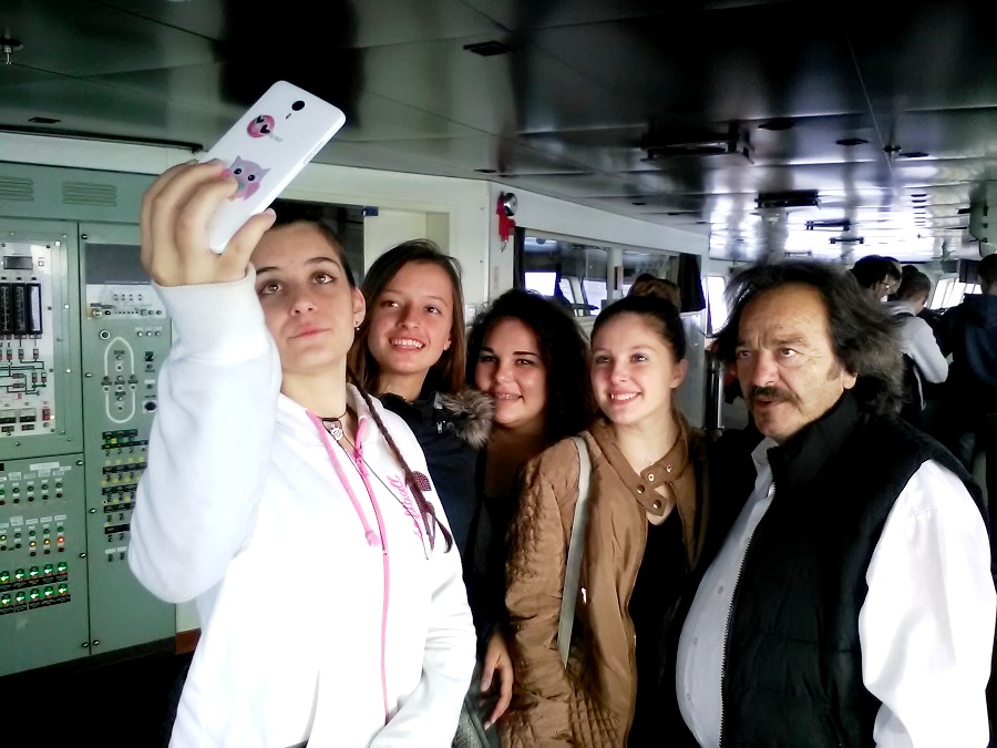 Του Δημήτρη Σταυρόπουλου O καπετάν Τάσος ποζάρει με τις μαθήτριες για μια φωτογραφία (φωτ. Δ. Σταυρόπουλος) Και ξαφνικά η γέφυρα του Super Ferry, έγινε μια ζωντανή αίθουσα διδασκαλίας. Τα άψυχα μηχανήματα, τα στροφόμετρα, το πηδάλιο, τα συστήματα επικοινωνίας, τα κουμπιά και η οθόνη του ραντάρ, οι ενδείξεις ταχύτητας, τα stabilizer, το αυτόματο σύστημα πλοήγησης, το… Continue reading Μάθημα ναυτιλίας και ανθρωπιάς εν πλω…