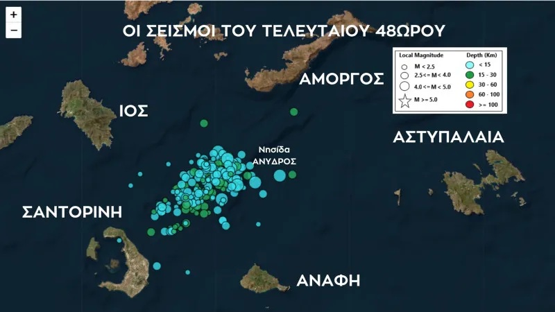 Οι σεισμοί άνω των 4 ρίχτερ αισθητοί στο Κόρθι και στην Τήνο Τετάρτη, 5 Φεβρουαρίου 2025 15:05 ΑΙΣΘΗΤΟΙ ΟΙ ΣΕΙΣΜΟΙ ΣΕ ΑΝΔΡΟ ΚΑΙ ΤΗΝΟ Εν αρχή τα νέα από Άνδρο. Στο νησί η πυροσβεστική εξακολουθεί να είναι σε επιφυλακή. Σύμφωνα με το ρεπορτάζ μας οι σεισμικές δονήσεις – όσες είναι πάνω από 4 ρίχτερ –… Continue reading Σεισμοί έως 4,8 ρίχτερ. Οι μεγαλύτεροι αισθητοί σε Τήνο και Άνδρο. Κατολισθήσεις στη Σαντορίνη. Τι περιμένουν οι ειδικοί.
