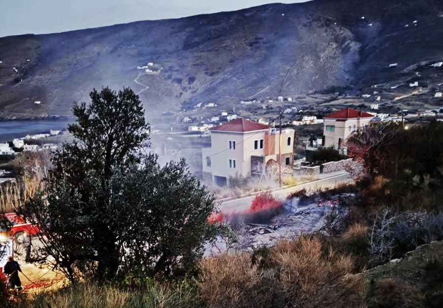 Φωτογραφία από το συμβάν. Η φωτιά ήταν δίπλα σε σπίτια. Σήμερα Πέμπτη 28/11 και ώρα 16:00 ειδοποιήθηκε το Πυροσβεστικό Κλιμάκιο Άνδρου για πυρκαγιά στη περιοχή Χώνες Όρμου Κορθίου. Στο συμβάν έσπευσαν δύο οχήματα της πυροσβεστικής με τρεις πυροσβέστες και ένα όχημα της πολιτικής προστασίας.