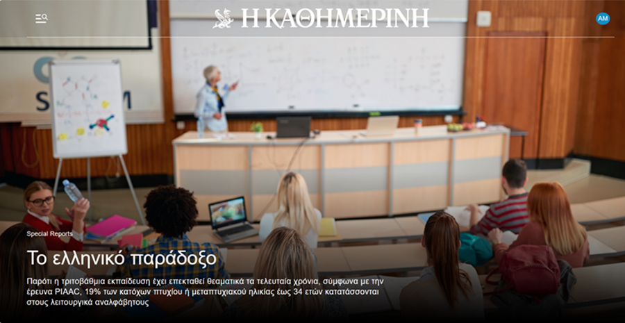 Του Μάνου Ματσαγγάνη Καθηγητή δημόσιας οικονομικής στο Πολυτεχνείο του Μιλάνου ΑΝΑΔΗΜΟΣΙΕΥΣΗ: ΚΑΘΗΜΕΡΙΝΗ Παρότι η τριτοβάθμια εκπαίδευση έχει επεκταθεί θεαματικά τα τελευταία χρόνια, σύμφωνα με την έρευνα PIAAC, 19% των κατόχων πτυχίου ή μεταπτυχιακού ηλικίας έως 34 ετών κατατάσσονται στους λειτουργικά αναλφάβητους.