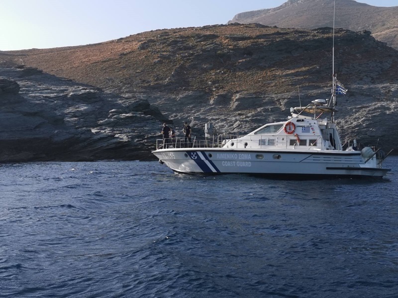 Φωτογραφία από την χτεσινή έρευνα. Ομάδα τεσσάρων δυτών του λιμενικού σώματος, που έφτασε στην Άνδρο χθες Δευτέρα 6/1 το βράδυ, βούτηξε και ανέσυρε σήμερα Τρίτη 7/1 τον αδικοχαμένο 27χρονο Χ.Μ., κάτοικο Άνδρου από τα 40 μέτρα βάθος που βρέθηκε.
