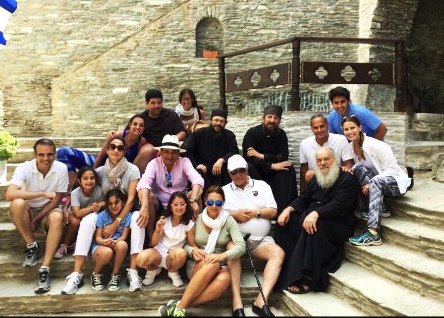Η οικογένεια Θερμιώτη σε εκδρομή το 2017 στη Μονή Παναχράντου στην Άνδρο. Σε πλήρη διάταξη. Από τον παππού μέχρι τα εγγόνια. Και τον εγγονό που παντρεύτηκε την πριγκίπισσα της Ιορδανίας. Ο ανδριώτικης καταγωγής νεαρός επιχειρηματίας Δημήτριος (Jimmy) Θερμιώτης γεννήθηκε το 1994 στο μακρινό Καράκας της Βενεζουέλας και είναι γιος του Αλέξανδρου Θερμιώτη και της Κορίνα Χερνάντεζ.