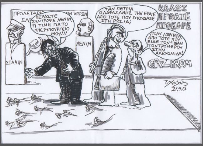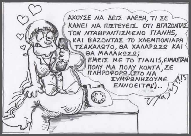 Ο Τάσος Χαλάς με δύο σκίτσα δίνει δύο πινελιές μιας δύσκολης πραγματικότητας. Μιας πραγματικότητας της Ελλάδας και της Ευρώπης. Καμια φορά ο σκιτσογράφος μπορεί να ξαφνιάζει. Μπορεί να σοκάρει. Μπορεί να ενοχλεί. Όμως μας δίνει κάτι από μια δύσκολη πραγματικότητα με πικρό χιούμορ. Έτσι συμβαίνει με τις δύο γελοιγραφίες του για την κρίση των ημερών…