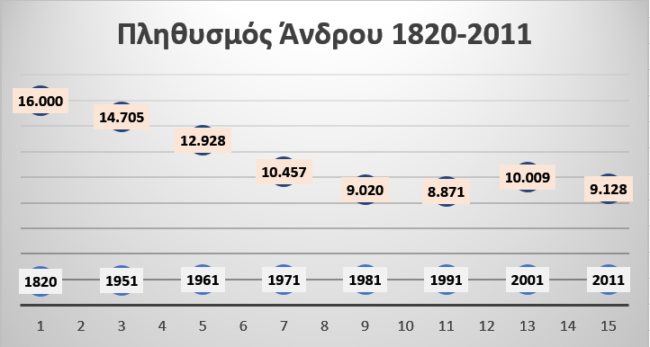 Επιμέλεια έρευνας: ΔΙΑΜΑΝΤΗΣ ΜΠΑΣΑΝΤΗΣ Ενδεικτική διαχρονική εξέλιξη του πληθυσμού της Άνδρου από τον 19ο μέχρι τον 21ο αιώνα. Η έρευνα ξεκίνησε από έναν πίνακα του πληθυσμού των νησιών των Κυκλάδων που μάς έστειλε ο ανταποκριτής μας στην Τήνο Γιάννης Βιδάλης. Ο πίνακας είχε δημοσιευτεί στο προφίλ του Κώστα Δανούση στο facebook στην Τήνο. Στη συνέχεια… Continue reading ΑΝΔΡΟΣ: Ιστορική εξέλιξη του πληθυσμού και της διοίκησης από το 1821 μέχρι το 2019