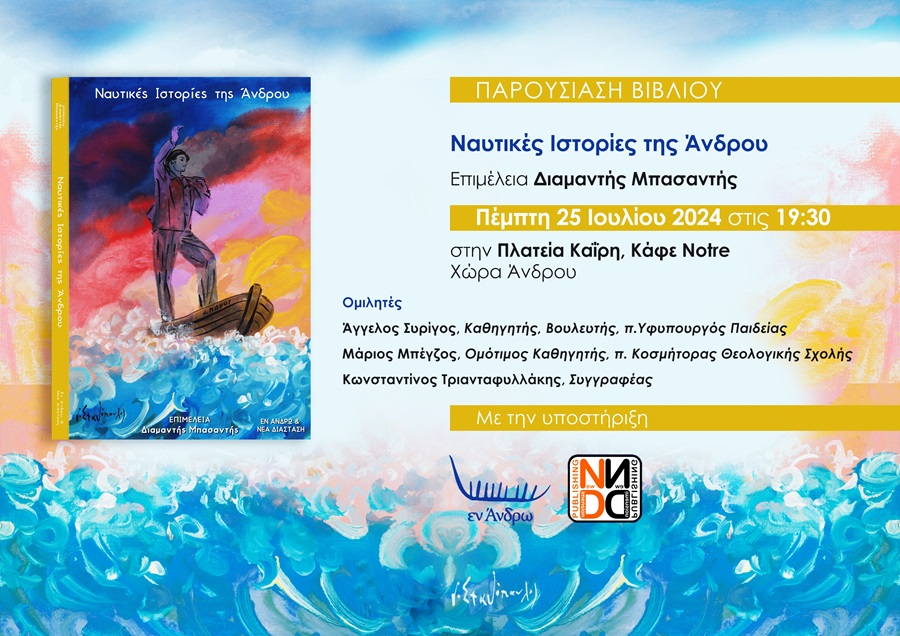 Φωτορεπορτάζ από το βιβλίο “ΝΑΥΤΙΚΕΣ ΙΣΤΟΡΙΕΣ της ΑΝΔΡΟΥ” που μόλις κυκλοφόρησε σε επιμέλεια Διαμαντή Μπασαντή και θα παρουσιαστεί την Πέμπτη, 25 Ιουλίου 2024, στις 19:30 στην πλατεία Καΐρη στο καφέ Norte. Ανάμεσα στις πάρα πολλές στιγμές στα πελάγη των ναυτικών της Άνδρου καταφέραμε και αποδελτιώσαμε είτε σε κείμενα των ιδίων είτε σε προσωπικές αφηγήσεις τους… Continue reading ΦΩΤΟΡΕΠΟΡΤΑΖ & ΠΕΡΙΕΧΟΜΕΝΑ ΑΠΟ ΤΟ ΒΙΒΛΙΟ “ΝΑΥΤΙΚΕΣ ΙΣΤΟΡΙΕΣ ΤΗΣ ΑΝΔΡΟΥ”