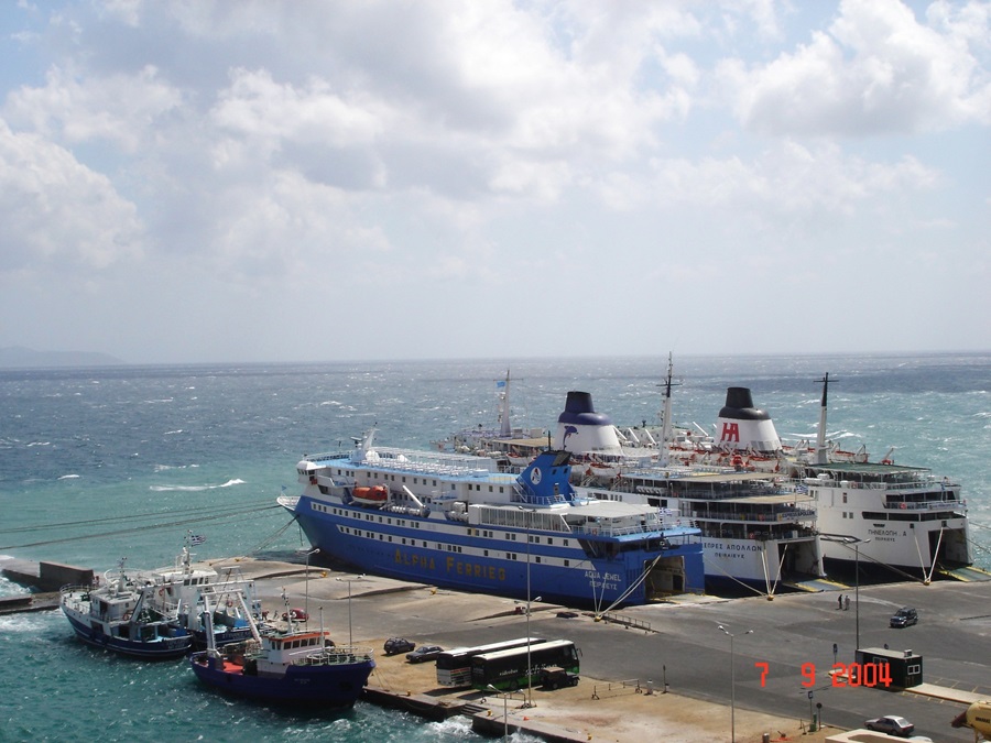 Συμβατικά πλοία μιας εποχής. Aqua Jewel, Εξπρές Απόλλων, Πηνελόπη. Ραφήνα, Σεπτέμβριος 2004.