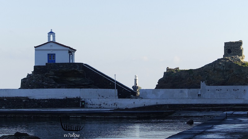Του ΔΙΑΜΑΝΤΗ ΜΠΑΣΑΝΤΗ Χειμώνας στην Άνδρο. Μια πρωινή βόλτα στην έρημη παραλία της Αγίας Θαλασσινής και μια σειρά εικόνες της Άνδρου και της ιστορίας της ξετυλίγονται μπροστά στο περιπατητή. Τις φωτογραφίζουμε, τις αποκρυπτογραφούμε και τις ερμηνεύουμε. Πρώτη-πρώτη ως εισαγωγή αυτή η εκπληκτική φωτογραφία των τριών ιστορικών και πολιτιστικών συμβόλων της Άνδρου.