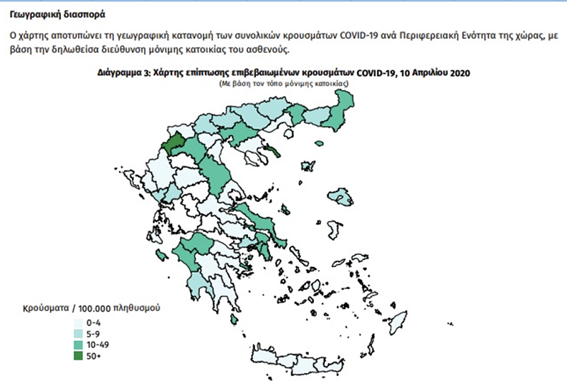 Αυτός είναι ο χάρτης που δείχνει την επιδημική καμπύλη της εξάπλωσης του COVID-19 στην Ελλάδα Η πορεία της επιδημίας της νόσου COVID-19 στην Ελλάδα, καθώς και στοιχεία για τα κρούσματα κορονοϊού, μέχρι τις 10 Απριλίου, καταγράφονται στην τελευταία έκθεση του Εθνικού Οργανισμού Δημόσιας Υγείας (ΕΟΔΥ).