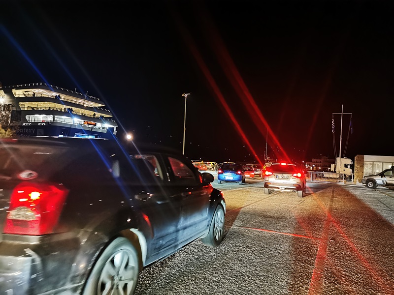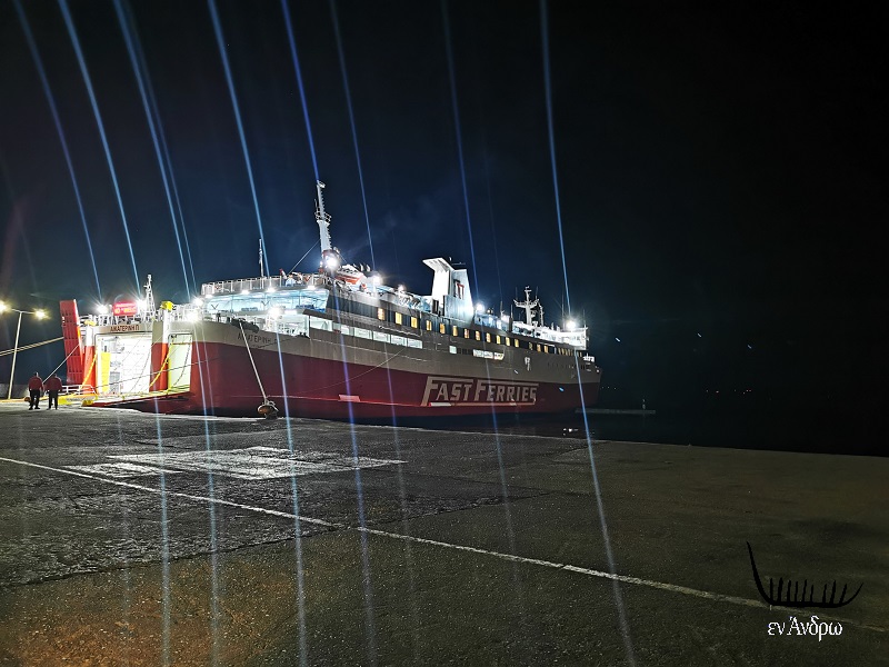 Στη σκοτεινή προβλήτα του Γαυρίου τα ΙΧ επιβιβάζονται στο βραδινό δρομολόγιο των 21:30 για Ραφήνα. Την προβλήτα φωτίζουν οι προβολείς του πλοίου και τα αναμμένα φώτα των αυτοκινήτων. Οι ιστοί φωτισμού όπως μπορεί κανείς να δει στο βάθος ή στα αριστερά είτε είναι τελείως σβηστοί είτε ανάβει ένα φως στα τρία! Αυτοί ήταν που…