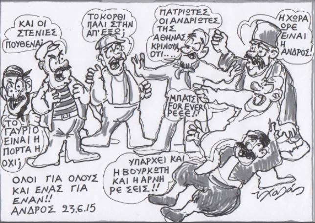 Του Ηλία Σταμούλη Κάτοικου Χώρας Άνδρου Όλα τα σχετικά με τα ταξί ξεκίνησαν όταν νεοεκλεγείς δημοτικός σύμβουλος και όψιμος ταξιτζής θεώρησε εαυτόν εξουσία έναντι διαμαρτυρόμενου πολίτη. Αυτό οδήγησε στις καταγγελίες και έτσι εφαρμόστηκε η νομιμότητα! Η άγνοια του πρωτάρη και όψιμου επαγγελματία οδήγησε τελικά στην εφαρμογή των νομίμων.