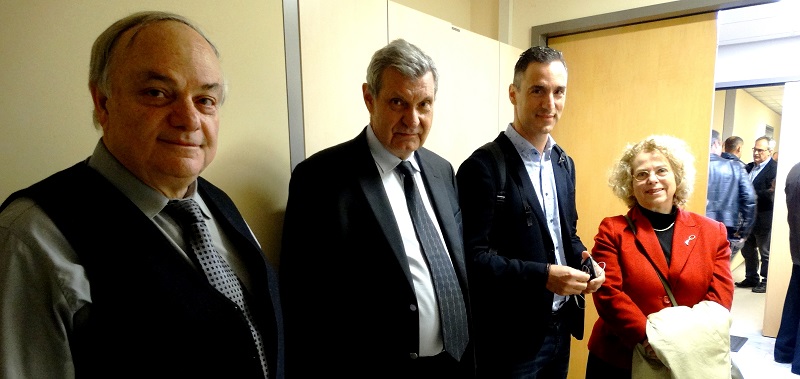 Πλήρης αυτή τη φορά η επιστημονική ομάδα του Δήμου Άνδρου. Στο διάδρομο της Αποκεντρωμένης Διοίκησης από αριστερά: ο καθηγητής Γεωλογίας ΑΠΘ Σπύρος Παυλίδης, πρόεδρος Ελληνικής Γεωλογικής Εταιρείας, ο καθηγητής ΕΜΠ Ανδρέας Ανδρεόπουλος, πρώην ΓΓ για τα Στερεά Απόβλητα, ο Δαμιανός Μπούρκας, ο μελετητής για την Άνδρο – πρόσφατα πέρασε χωρίς προβλήματα την μελέτη του…