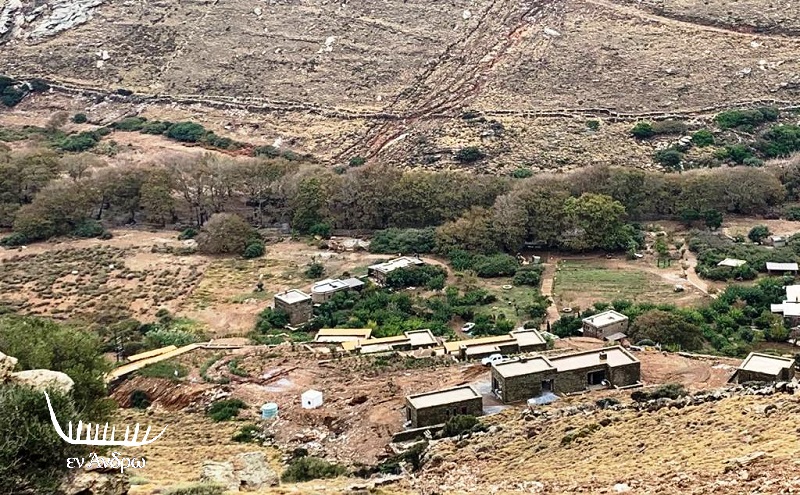Το ξενοδοχειακό συγκρότημα Όναρ των Πατζόπουλου-Μενεγάκη στα Άχλα πνιγμένο από την λάσπη. Ανέβηκε πολύ ψηλά η κοίτη του ποταμού Άχλα, ενώ ταυτοχρόνως κατέβαιναν πολλά νερά από τις πλαγιές κι άνοιγαν νέα ρέματα όπως φαίνεται στην φωτογραφία.
