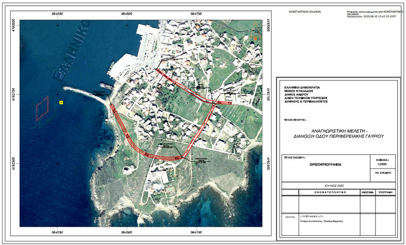 Ο περιφερειακός δρόμος του Γαυρίου. Θα ξεκινά από το τέλος του πάρκινγκ, θα περνά σε μια απόσταση από το νέο πεδίο προσέγγισης ελικοπτέρων, θα ανεβαίνει μέχρι το ξενοδοχείο Andros Holiday Inn. Kai θα συνεχίζει μέχρι την έξοδο του στην κεντρική οδική αρτηρία απέναντι από την αστυνομία.