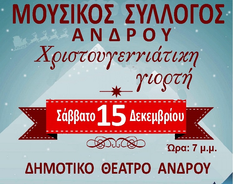 Ακόμα μια χρονιά ο Μουσικός Σύλλογος Άνδρου πιστός στις σημαντικές παραδόσεις των ημερών και στη αστική παράδοση του νησιού διοργανώνει μεγάλη μουσική συναυλία στο Δημοτικό Θέατρο της Χώρας. για να μεταφέρει το Χριστουγεννιάτικο κλίμα στο νησί. Αξίζει κάθε επαίνου η πρωτοβουλία – Εν Άνδρω. ΕΠΙΣΤΟΛΗ ΜΟΥΣΙΚΟΥ ΣΥΛΛΟΓΟΥ Αγαπητέ κύριε Μπασαντή, Επισυνάπτω συνημμένη αφίσα και ευελπιστούμε…