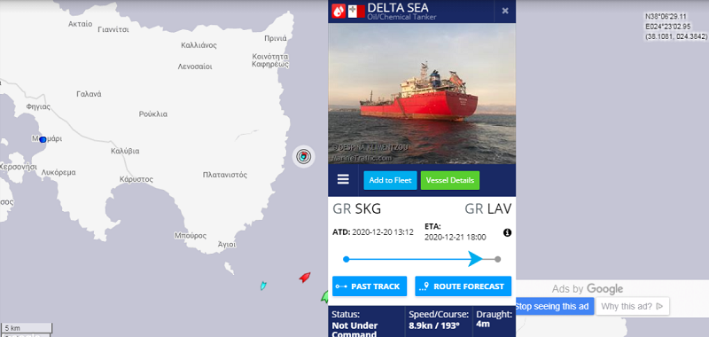 Το σημείο του συμβάντος στον Κάβο Ντόρο και το πλοίο που είχε το πρόβλημα. Σήμερα το πρωί στις 05:30, το Ενιαίο Κέντρο Συντονισμού Έρευνας και Διάσωσης του Υπουργείου Ναυτιλίας ενημερώθηκε από Έλληνα πλοίαρχο δεξαμενόπλοιου “Delta Sea”, σημαίας Μάλτας για μηχανική βλάβη και ακυβερνησία του πλοίου και ενώ αυτό έπλεε στη θαλάσσια περιοχή του Κάβο Ντόρο.
