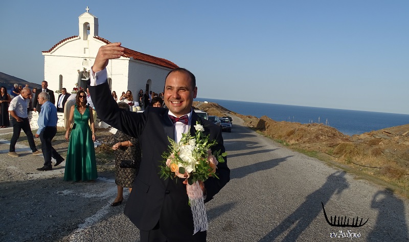 Τον είχαμε συνηθίσει με γραβάτα. Όμως για την περίσταση έβαλε παπιγιόν. Και βγήκε στο ξάγναντο περιμένοντας και γνέφοντας στην καλή του – που ως συνήθως σε αυτές τις περιπτώσεις αργούσε! Ο λόγος για τον έπαρχο Άνδρου και αντιπεριφερειάρχη Ενέργειας Κυκλάδων Δημήτρη Λάσκαρη που το Σάββατο 3 Οκτωβρίου 2020 παντρεύτηκε την Μαρία στο εξωκλήσι της Αγίας…