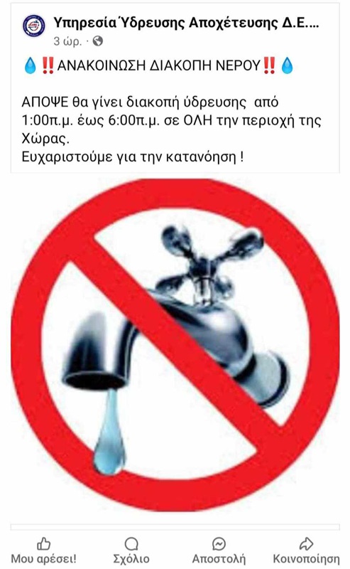 Του Κυριάκου Θωμά π. Δημάρχου Υδρούσας, π. Προέδρου Δημοτικού Συμβουλίου, Οικονομολόγου (ΟΠΑ) Φωτογραφία αρχείου. Τώρα οι καθημερινές διακοπές στη Χώρα ξεκινούν στις 10:30 το βράδυ μέχρι τις 7:00 το πρωί. Κι ο χορός της σιωπής καλά κρατεί. Ίσως όμως χρειαστεί προσεχώς και ο “χορός της βροχής”… Την άνοιξη του 2024, όταν ο Δήμος έκανε την…