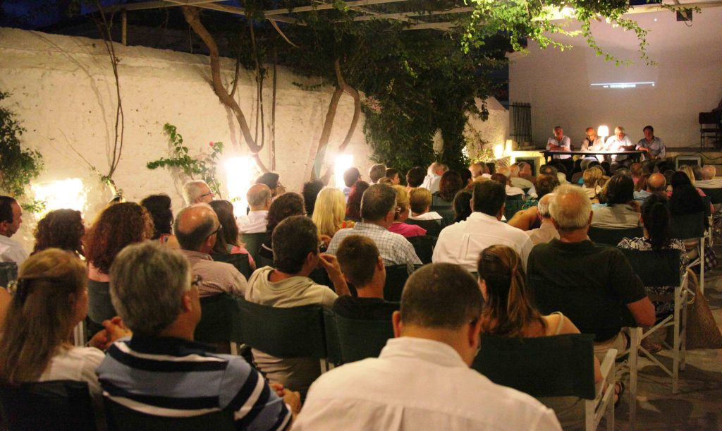 Το πολυπληθές ακροατήριο παρακολουθεί τους ομιλητές (Φώτο-Άνδρος) Είκοσι εννέα συγγραφείς, δημοσιογράφοι, λογοτέχνες, μελετητές, καθηγητές, φοιτητές και επαγγελματίες συνέβαλαν καθένας με τον τρόπο του στην αποτύπωση της Άνδρου στο αφιέρωμα της ιστορίας και του πολιτισμού ου εκδόθηκε εφέτος το καλοκαιρι. Και δεκαεπτά επιχειρήσεις του νησιού συνέβαλαν οικονομικά στην έκδοση του. Χωρίς αυτούς η αρχική ιδέα θα…