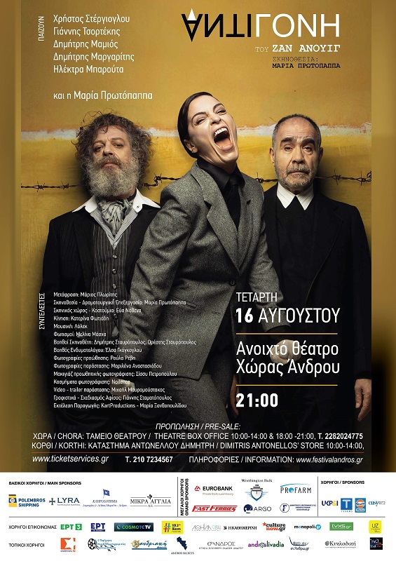 ΑΝΤΙΓΟΝΗ του Ζαν Ανούιγ Σκηνοθεσία: Μαρία Πρωτόπαππα Τετάρτη 16 Αυγούστου, 21.00 Ανοιχτό Θέατρο Χώρας