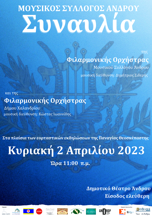 Η συναυλία των δύο Φιλαρμονικών, του Μουσικού Συλλόγου Άνδρου και του Δήμου Χαλανδρίου, στο κλειστό Δημοτικό Θέατρο, ήταν η τελευταία εκδήλωση των τριήμερων εορτασμών για την Θεοσκέπαστη, την πολιούχο της νήσου Άνδρου. Η Φιλαρμονική του ΜΟΥΣΑ πήρε την πρωτοβουλία να προσκαλέσει αυτή του Δήμου Χαλανδρίου και να πορευτούν μαζί μουσικά σε αυτό το έντονα εορταστικό…