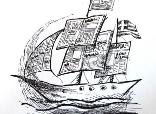 Παράξενο. Η πρώτη εικόνα αποτυπωμένη στη μνήμη από τον πατέρα μου είναι στην ηλικία των τεσσεράμισι χρόνων. Περπατούσαμε κάτω από τα μεγάλα κυπαρίσσια ξημερώματα στα Λειβάδια. Πηγαίναμε στη Χώρα. Με κρατούσε από το χέρι. Δεν θυμάμαι πολλά από εκείνο το ταξίδι. Θυμάμαι πως στο Γαύριο δεν είχε καράβι και μπήκαμε σ’ ένα καΐκι. Πριν φύγουμε αγοράσαμε ένα μεγάλο φαγκρί! Το είχε ένας ψαράς αγκιστρωμένο ζωντανό μέσα στο νερό. Το σέρναμε με την πετονιά ως τη Ραφήνα. Ακόμα θυμάμαι πως το ταξίδι εκείνο διάρκεσε 5½ ώρες…
