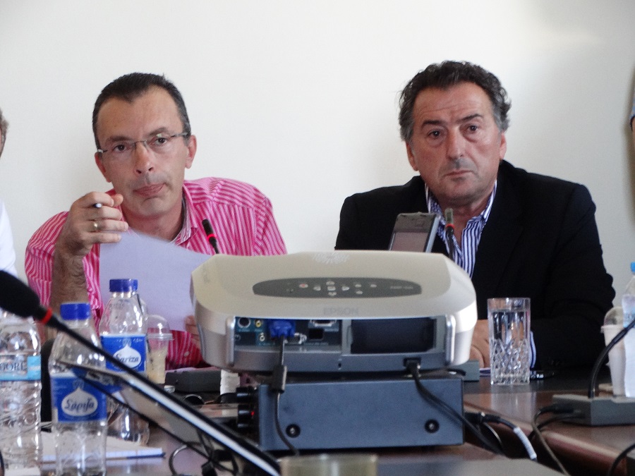 Δεξιά ο Κυριάκος Θωμάς που καταψήφισε την πρόταση του δημάρχου. Αριστερά ο δήμαρχος που με μια ισοζυγισμένη εισήγηση έθεσε το μέγα θέμα των σκουπιδιών στο τραπέζι.