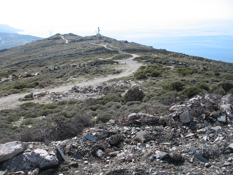 Η περιοχή Προφήτης Ηλίας όπου είχε χωροθετηθεί ο ΧΥΤΥ το 2009. Αριστερά στα 600 μέτρα το ρέμα και στα 300 η πηγή της Φαρδιάς Στράτας και δεξιά στα 400 μέτρα η πηγή της Φλέας (Φωτο: Δ. Μπασαντής 2009)