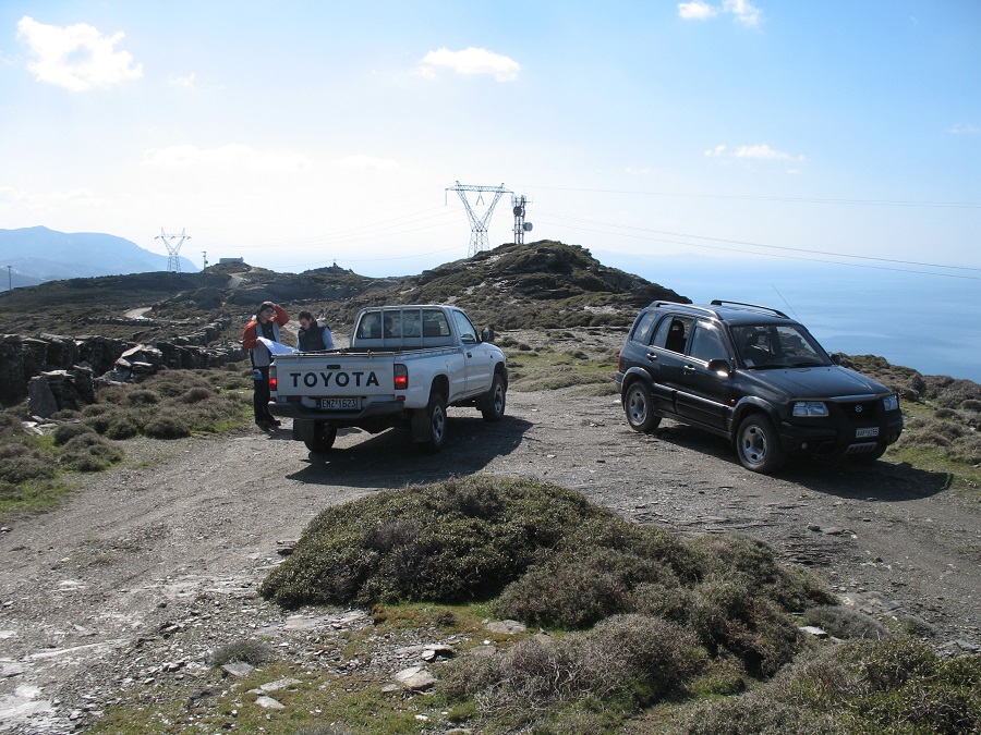 Εξετάζοντας το τοπογραφικό του ΧΥΤΥ και τις αποστάσεις από τις πηγές με τον Αντώνη Λάβδα (Φωτο: Δ. Μπασαντής 2009)