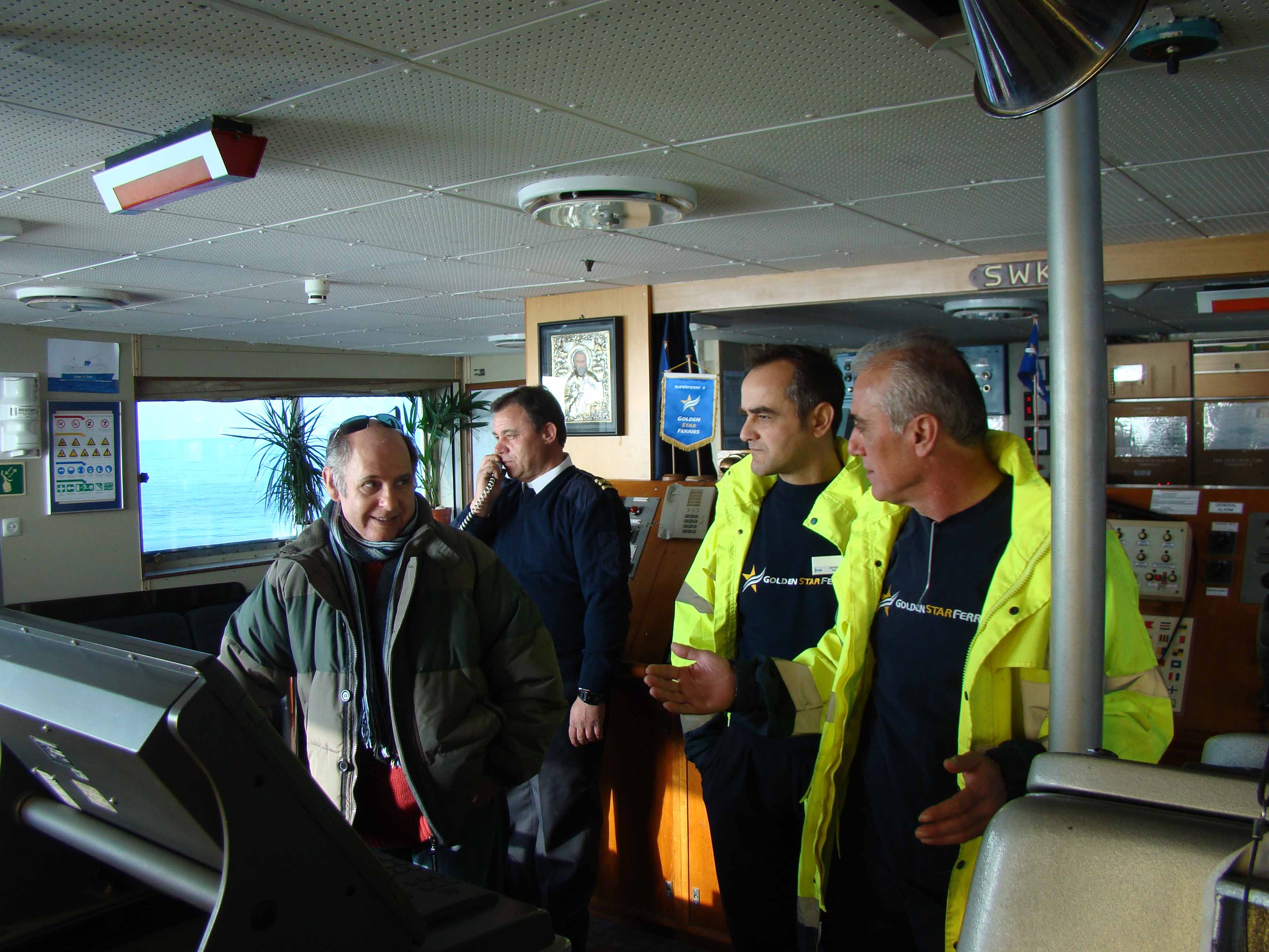 Μετά στη γέφυρα. Ο Οδυσσέας αμολιέται στα κιάλια και χαζεύει το ραντάρ. Πιάνεις την κουβέντα με τον Στενιώτη καπετάν Αντώνη που έχει βάρδια.