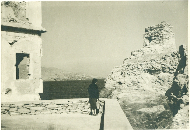 Η Βιβίκα Εμπειρίκου μπροστά στα κατεστραμμένα Εμπιρικαίϊκα το 1951. Φωτογραφία Ανδρέα Εμπειρίκου.