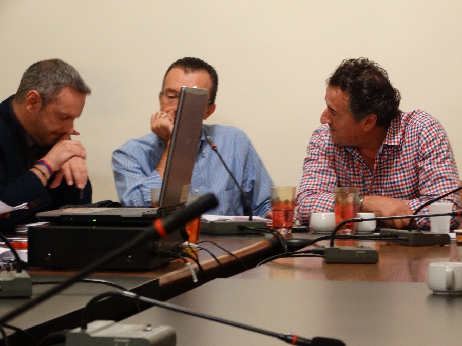 Κοιτώντας περιπαικτικά τον κ. Καπάκη. Πιο πριν ο κ Σουσούδης και ο "στενός συνεργάτης" του κ. Μπάλας είχαν ανταλλάξει και ειρωνικές ματιές μεταξύ τους!!