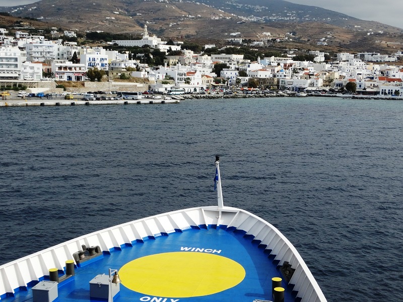 Πρώτο λιμάνι, κλασικά, η Άνδρος. Βγήκαν οι 400 επιβάτες και το 70% των ΙΧ στο Γαύριο... (φωτ. Εν Άνδρω).