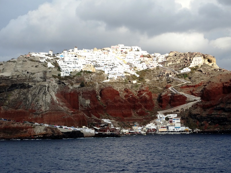 Πρώτη εικόνα στη Σαντορίνη η Οία. Είχαμε να την δούμε 35 χρόνια!!! Τρομάξαμε να την γνωρίσουμε. Πως μεγάλωσε αυτό το χωριό κι έγινε πόλυ; Πως μεγάλωσε το Αμμούδι κι έγινε λιμάνι; Ρε πως μεγάλωσαν όλα και μόνο εμείς μικρύναμε από τότε... (φωτ. Εν Άνδρω).