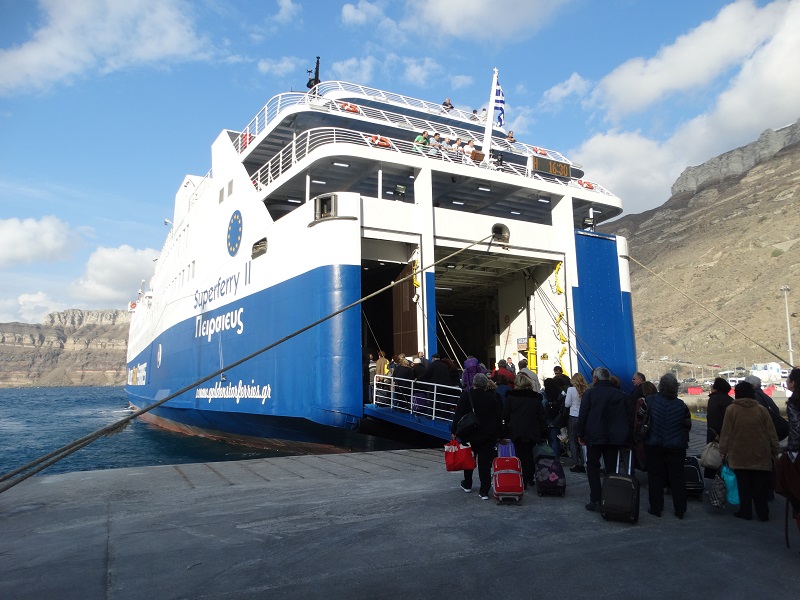 Αθηνιό: οι προσκυνητές από Σαντορίνη για Τήνο και Άνδρο ανεβαίνουν στο Supeferry II. Πρώτη στάση Τηνος. Δεύτερη στάση Άνδρος. (φωτ Εν Άνδρω).