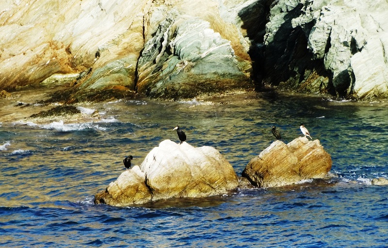 Καθώς το πλοίο αναχωρούσε για Τήνο τέεσερις κορμοράνοι (θαλασσοκόρακες) γύρισαν και μας κοίταξαν με ύφος λίγο μπλαζέ. Μια εικόνα της άγριας φύσης που διαθέτει σε αφθονία ακόμα η Άνδρος και που μάλλον δεν διαθέτουν νησιά όπως η Μύκονος και η Σαντορίνη που πηγαίναμε (φωτ. Εν Άνδρω).