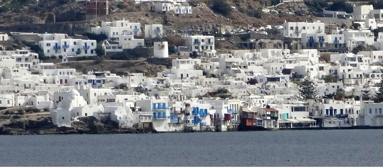 Μια τελευταία φωτογραφία με τηλεφακό το παλίο λιμάνι με τα κλασικά σπίτια της Μυκόνου πάνω στο κύμα... (φωτ. Εν Άνδρω).