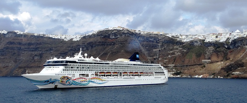 Σαντορίνη χωρίς κρουαζιερόπλοιο κάτω από τα Φυρά δεν γίνεται. Χαλάει το τοπίο!!! Εδώ και δεκαετίες τα κρουαζιερόπλοια ειναι μέρος του τοπίου!!! Τυχεροί που λόγω φθινοπώρου πέσαμε πάνω σε ένα!!! Το αποθανατίσαμε για την ιστορια της μέρας (φωτ. Εν Άνδρω).