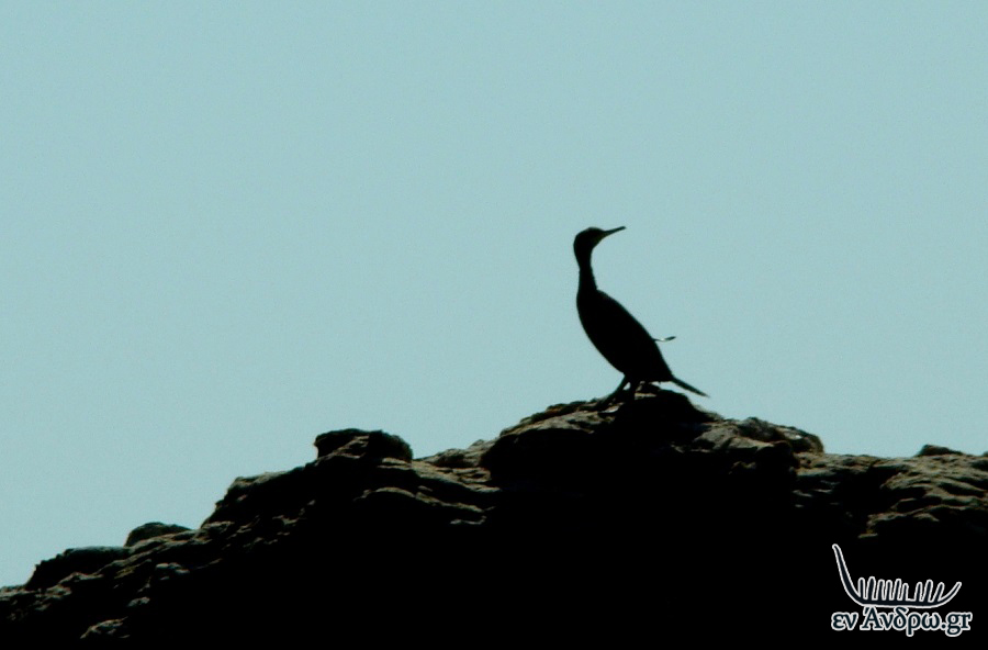 Θαλασσοκόρακας: Δύο φωτογραφίες του. Λες κι είναι γλυπτό πάνω στον θαλασσοδαρμένο βράχο έτσι ακίνητος κόντρα στον ήλιο.