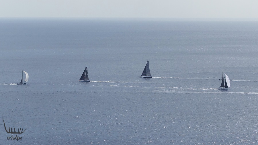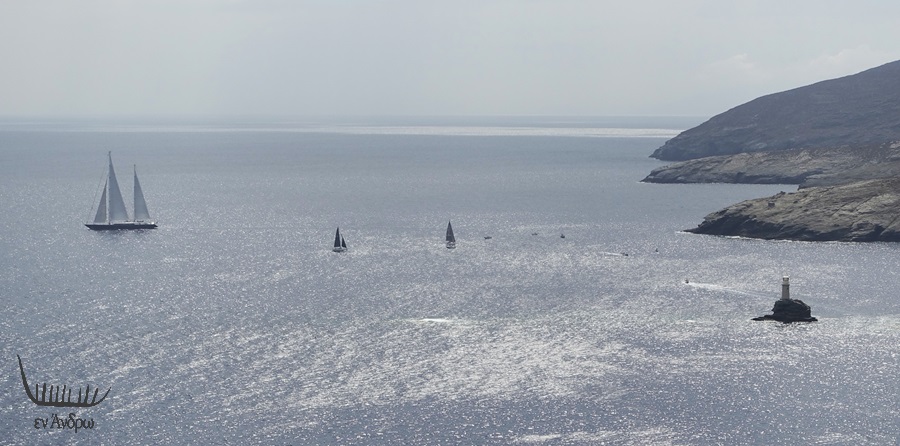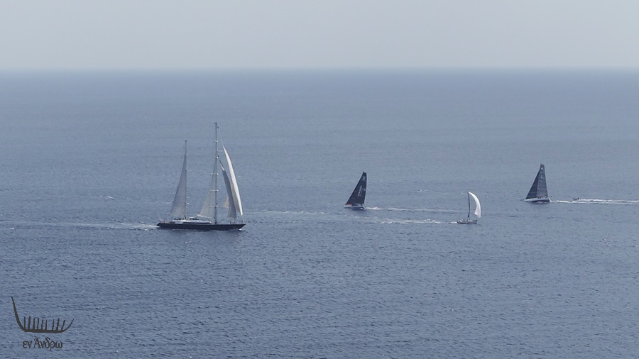 Πάμε τώρα στην ιστιοδρομία της Άνδρου, στο Andros Race, όπως το γράφουν οι διοργανωτές. Οι φωτογραφίες από τον λόφο της Αγίας Τριάδας εντυπωσιάζουν. Τα σκάφη με ανοικτά τα μπαλόνια τους στο καιρό όταν είναι πρίμα και με τα πανιά τους ανοικτά όταν ο καιρός είναι διαφορετικός.