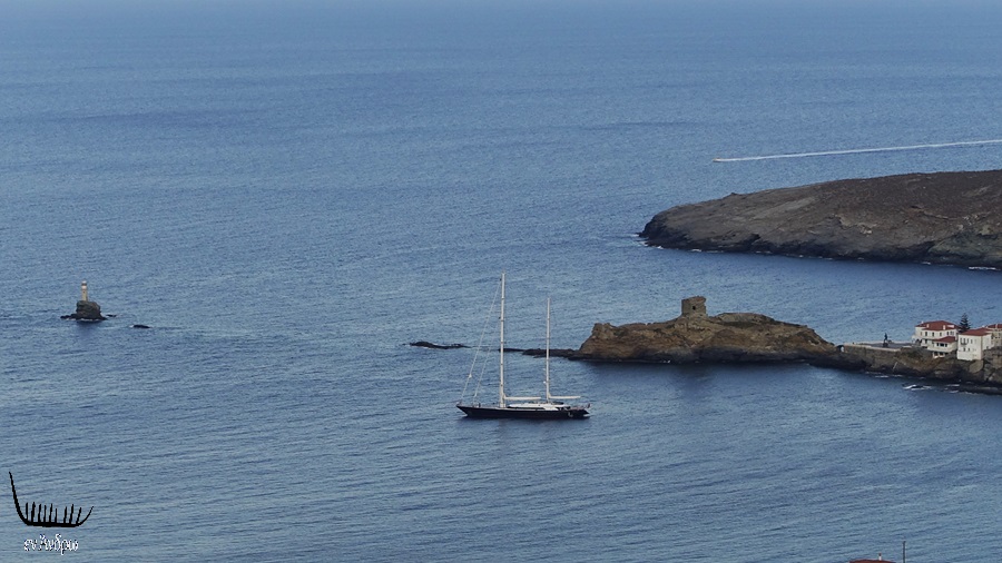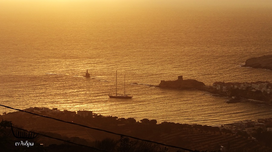 Το δικάταρτο ιστιοφόρο, ο φάρος Τουρλίτης, το ερείπια του κάστρου του Μαρίνου Δάνδολου και η πλατεία του Αφανή Ναύτη με το άγαλμα. Οι περιπλοκές της ιστορίας της Άνδρου...