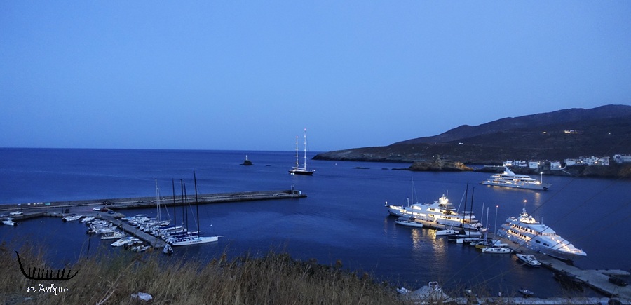 Βράδιασε και φωτίστηκαν γιώτ και κότερα, αλλά και η Χώρα. Η Άνδρος ταξιδεύει με όλα τα σκάφη και τα πλεούμενα, που έφτασαν αυτές τις μέρες στο παρόν και στο παρελθόν της...